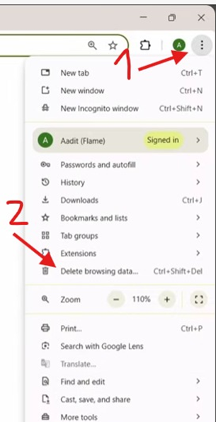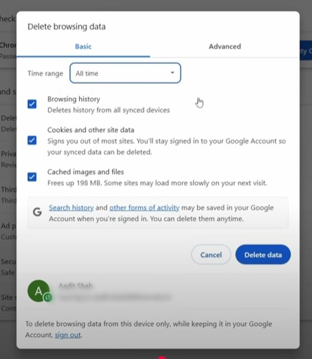 Chrome Clean Cookies and Cache: