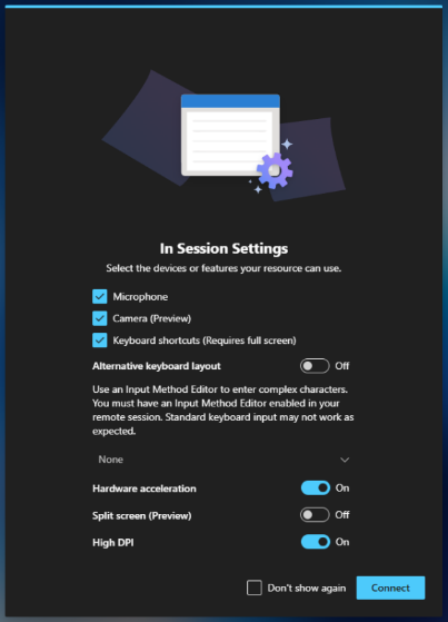 6. You will be requested for some necessary permissions in order for the VDI to work properly. Please enable them as in the picture below, also you can click on the "Don't Show Again" box for the permissions to be set up permanently.